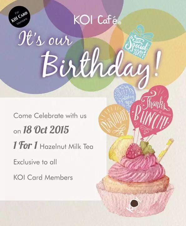 【KOI奶茶】将迎来不知道第几个店庆日,所有KOI会员(10月15日前注册)当天购买坚果奶茶都可享买一送一。不过需要使用KOI卡支付哦,所以赶紧找身边是KOI会员的伙伴吧~~