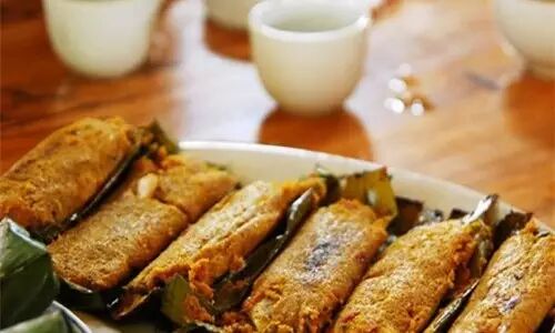 Otak在马来语中的意思是“大脑”,因为它的质感与脑花颇为相似。但其实它的原材料是鱼肉,捣烂、压制成形后,简单地加料,用椰树叶包裹,就上炉烤制了。