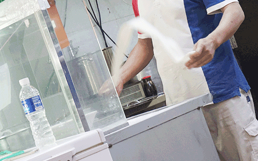 据说这样反复拍扯,可以将面里的空气被充分释放出来,所以煮熟以后就格外耐嚼、软硬适中