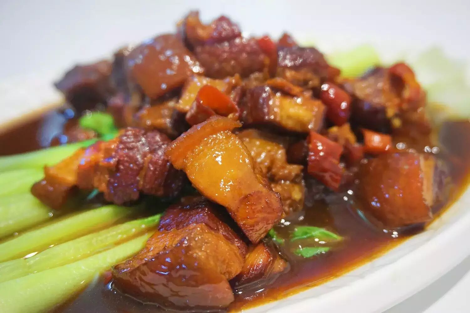 真的好吃哦~~小小的肉块特别入味。瘦肉紧致、肥肉弹嫩甜而不腻、香味可口。垫在下面的几片菜心都非同一般,特别爽脆清香
