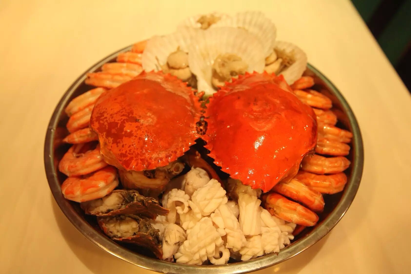 因为提前预约过,小K向往的至尊海鲜锅很快就上桌了。红的红,白的白,黄的黄,色彩鲜艳,乍一看便让我食指大动