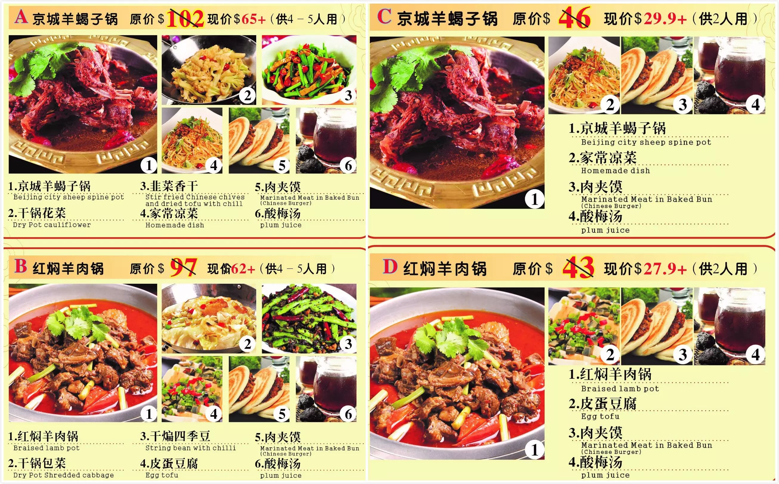 上班族福利!【满族全羊铺】推出特价套餐,只在工作日11点到下午5点半供应(公共假日前一天除外)。5人份套餐不到70新币2人份套餐只要不到30新羊肉锅、肉夹馍、家常小菜,应有尽有~点击图片查看套餐详情;需提前一天预订。