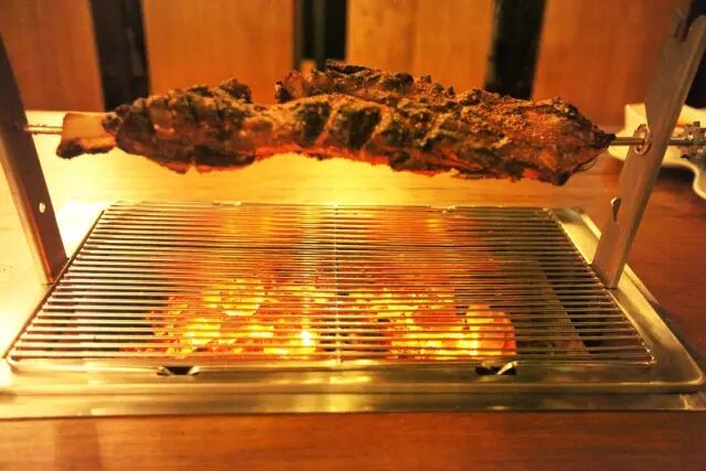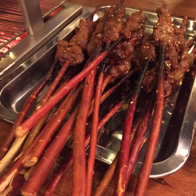 是的,不用怀疑!从中国运过来的正宗红柳木枝,串上羊上脑肉,在座的都是第一次吃到。
