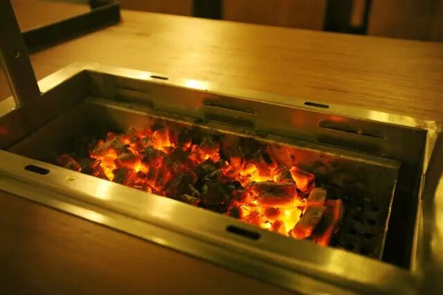 二楼聚餐,惬意舒适,烧烤桌精心设计,一边烤一边吃,就是这个范儿!
