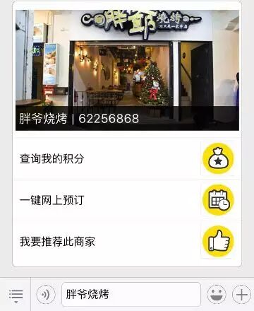 通过可派微信号回复“胖爷烧烤”就可以订位啦!