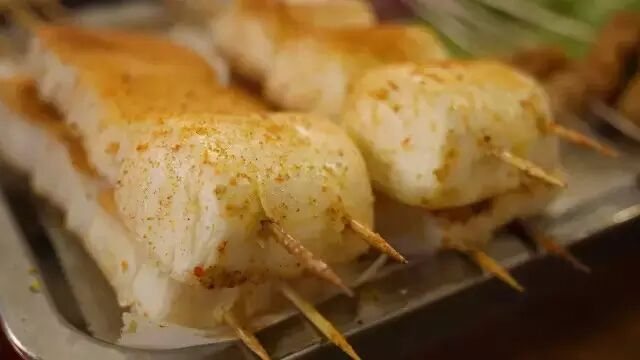 地道烤脑花,在新加坡可不多见。采用猪脑子,拌之以海椒末、花椒粉以及其他佐料,火烤而成。气味醇厚,入口绵软,香而不腻,油而不肥。