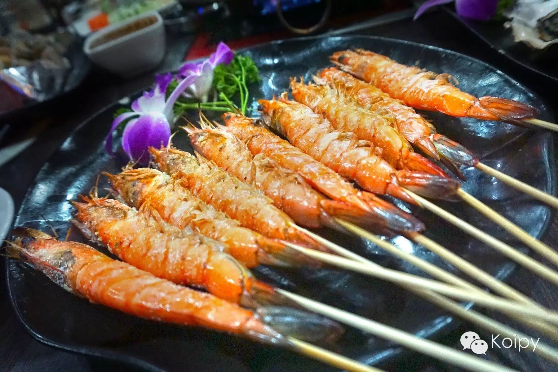 色泽鲜艳,虾壳微焦,独特的海盐配上鲜嫩的虾肉,肥美多汁!