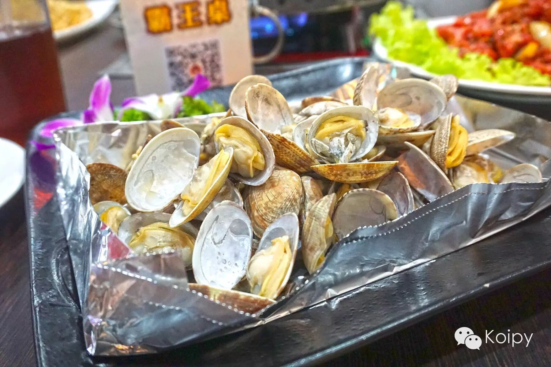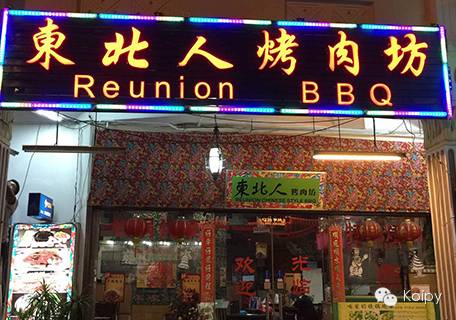 烤的时候真是香味四溢!要不是有人拦着,队长不等全熟就要开吃了。除了桌上的现场烤肉,还有各种现成的烧烤~下图就是【东北人烤肉坊】的全开放烧烤台,超干净、吃得放心。