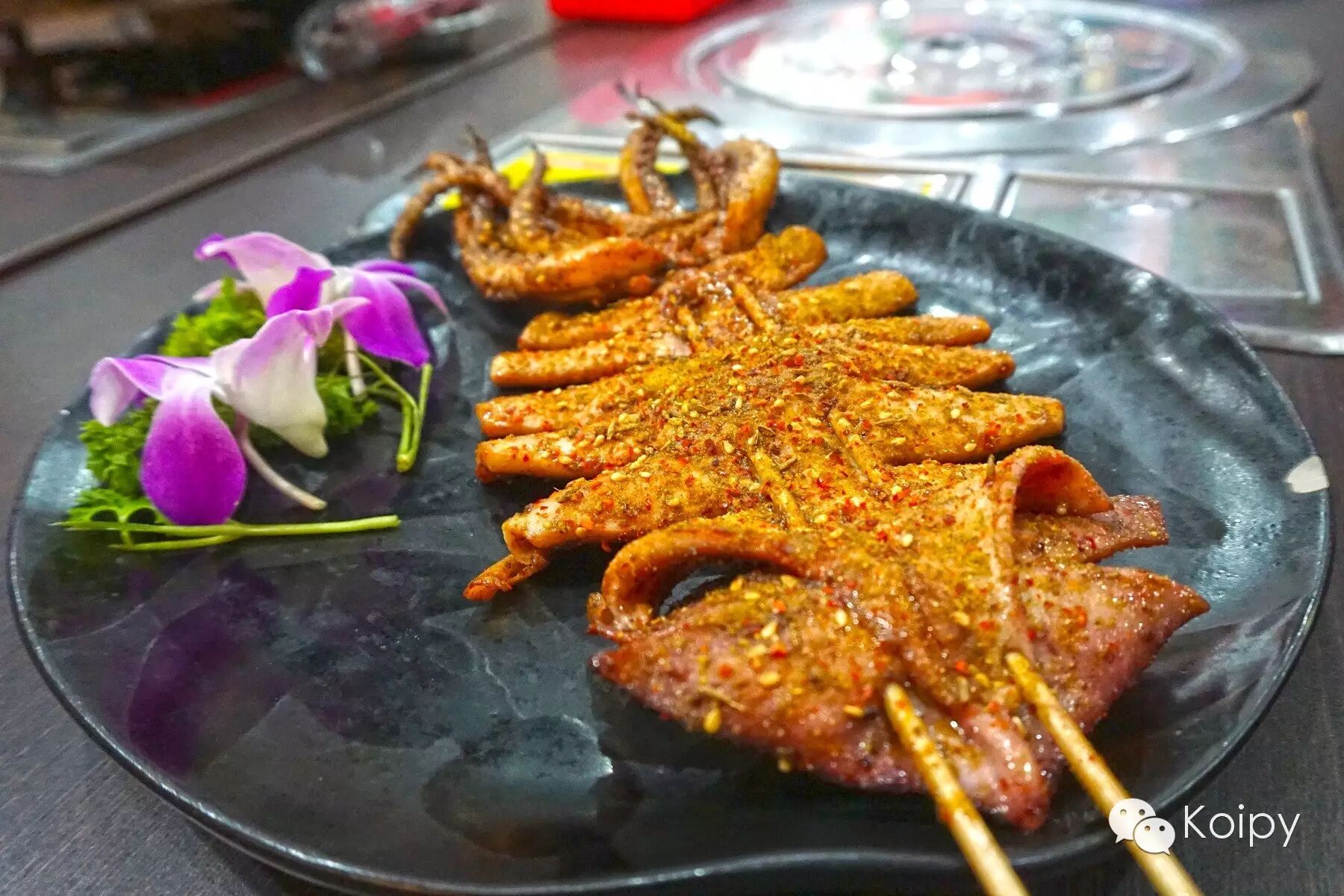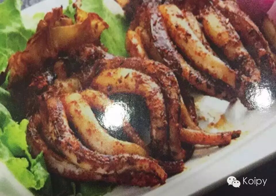 这一只鱿鱼,比队长的两个巴掌还大!金黄色的表皮、配上香喷喷的辣椒和孜然,闻着就醉了~迫不及待吃一口,特别弹滑、有嚼劲!