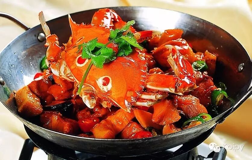 干锅螃蟹。干锅本身的配菜,加上另外加入的螃蟹,只能用盆满钵满来形容!从印度尼西亚漂洋过海来的大螃蟹端坐锅中,勾引着吃货的哈喇子神经~
