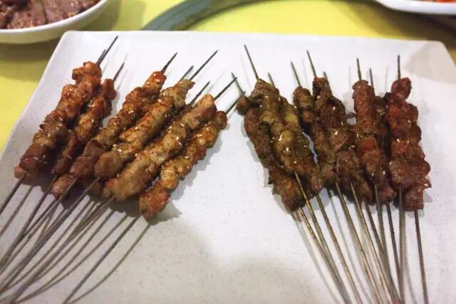 五花肉和羊肉永远是烤串的必点。烤出来的五花肉色泽焦黄油亮,味道微辣中带着鲜香,不腻不膻,肉嫩可口。羊肉是小K的最爱了,羊肉切成小块,肥瘦搭配,穿在烤肉铁钎子上,吃起来带劲。
