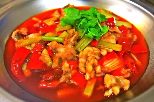 泡椒牛蛙,味咸鲜,肉细嫩,色红亮,泡椒香气浓郁。牛蛙的营养十分丰富,高蛋白质、低脂肪、胆固醇极低还有滋补解毒和治疗某些疾病的功效。