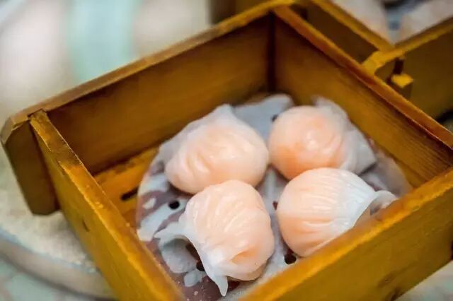 粤菜里能和烧麦一绝高低的就是虾饺了。口感暂且不说,就看着饺皮,透明地都能看到里面一个个虾仁了。厨师采用的馅料是每天现剥的大只玻璃虾,咬上一口Q弹可口,根本停不下来。