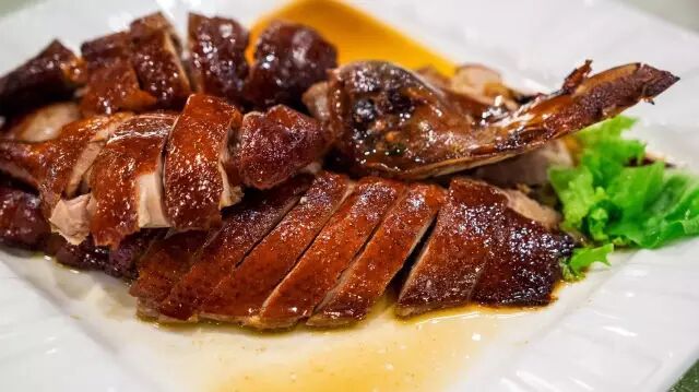 樟茶鸭是一道传统川菜,餐馆谭师傅融合粤菜的做法也是蛮拼的。选用新上市的肥嫩公鸭,经腌、熏、蒸、炸四道工序制成。在四道工序中以选用樟树叶和花茶叶烟熏鸭最为关键。整鸭熏好后要先斩段后整形,复原于盘中,使鸭子不仅外酥里嫩,而且形好看。