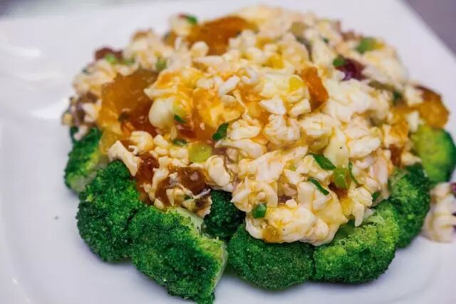 这道看似颜值不高的菜却是营养最丰富的,蜜桃胶的原本做法并不是和蛋白一起炒。粤菜嘛,大的懂的,什么都能搭配在一起。