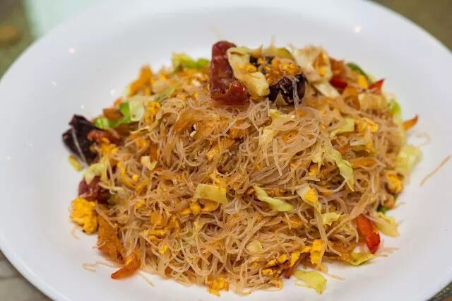 如果说这道菜没有放一滴油,大家会相信么?说真,这道米粉的油全部来自腊肠,没有多余的油份。炒米粉做考验功夫的是炒出来的细米粉劲道而不断,不得不佩服大厨的手艺。和虾干、南瓜和菜粒一起炒的米粉味道棒棒哒。