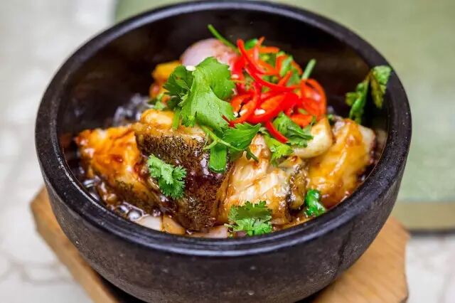 鳕鱼和石锅的搭配能做到如此精致,这让桌上的小伙伴都不忍动筷。上等的鳕鱼片加入少量秘制调味汁,石锅局热,开盖后香气扑鼻、味道鲜美。趁热咬上一口,鱼肉细嫩,十分入味。