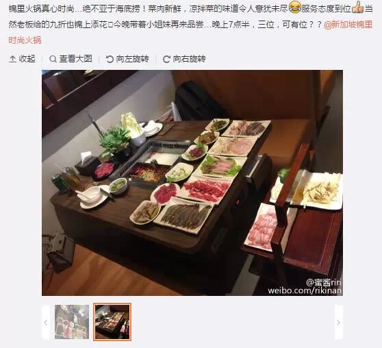 到店消费前发微博@可派K卡 @新加坡锦里时尚火锅 进行订位,可享受9折福利哦!