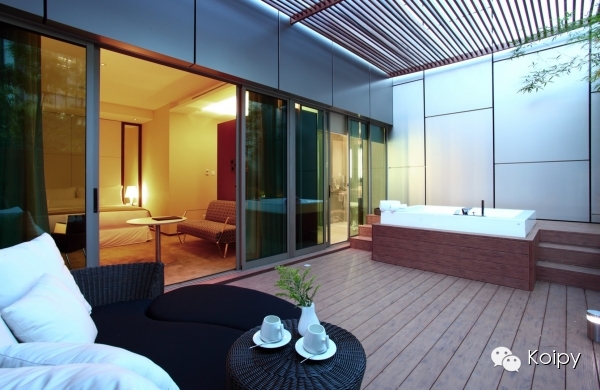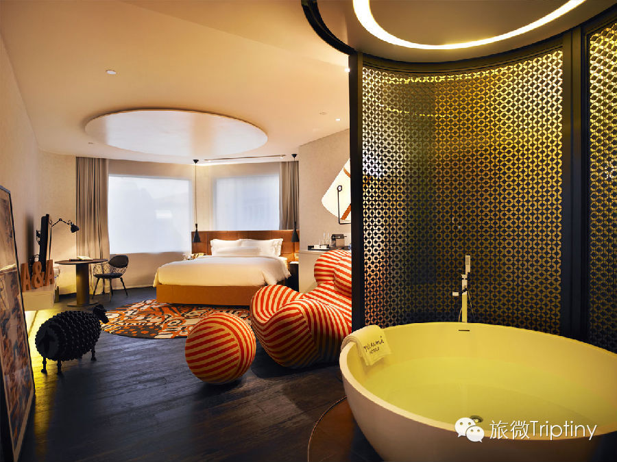 这家酒店最大的特色是浴室。行政套房里贝壳型的淋浴间、绿洲套房里带LED灯的按摩浴缸,听起来就很酷炫。不过如果你不喜欢暴露,尤其是和朋友一起住的时候,那这个酒店大概不是合适的选择。