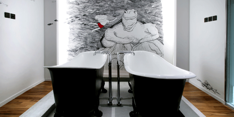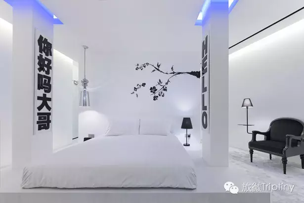酒店大堂是由Asylumsh设计的工业格南,使得酒店的现代设计和周遭的环境融为一体,相得益彰。二楼的主题是与众不同,是由PHUNK工作室设计的,从墙壁到霓虹灯到彩虹走廊到室外甲板都是由各色定制的马赛克瓷砖铺叠而成。三楼是由DP建筑师带来的世界不仅仅是黑白,走过黑色的走廊,进入反差的白色房间,你会发现各种各样的折纸和波普艺术作品。四楼是由fFurious呈现的以物质享受为主题的五间不同氛围的阁楼房间,在这儿你可以放松的体验那些奇特的幻想。