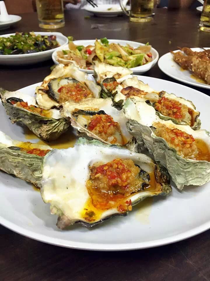 这家店从下午5点开始营业一直到转天凌晨5点,理所当然就成了半夜放毒的好去处。他们家的烤脑花,可是坡县唯一一家。烤生蚝超级鲜美,个头都不小,一口一个甭提多过瘾了。别忘了点上竹蚌和泡椒鱼,味道真心不是盖的!