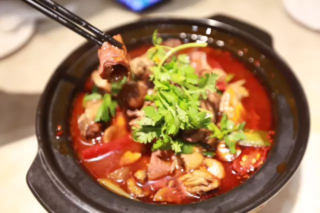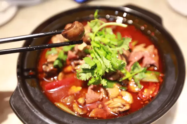 肉质鲜嫩的肉鸡,搭配板栗的香味,肥肠烂而不腻。肥肠和鸡肉在经过砂锅煲之后,都入味了。