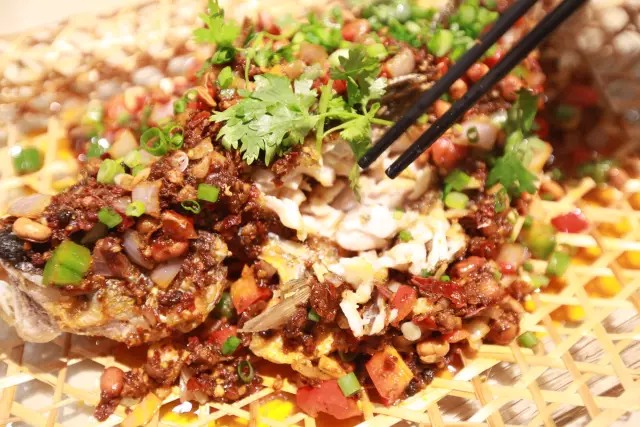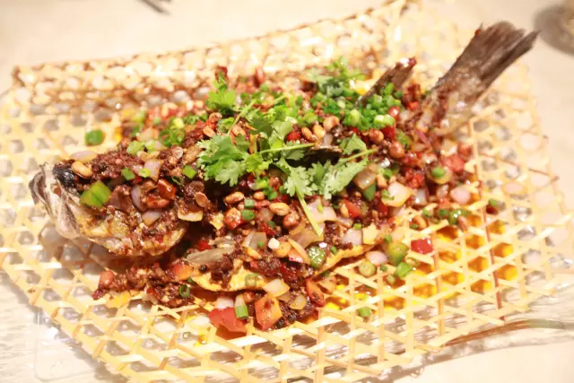 流行的川式烤鱼吃法多样,这家的烤鱼以竹网装盛,使得多余的油分沥如下面的盘内,吃上去脆而不腻。烤鱼较为偏重香辣口味,以红椒青椒、花生米和香菜为辅料搭配,口感鲜嫩香辣,吃起来口感酥脆,鱼皮吃起来非常有韧劲。