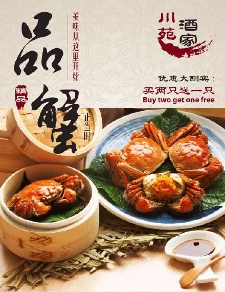 凭以上图片到店品蟹,可享买2送1的优惠。