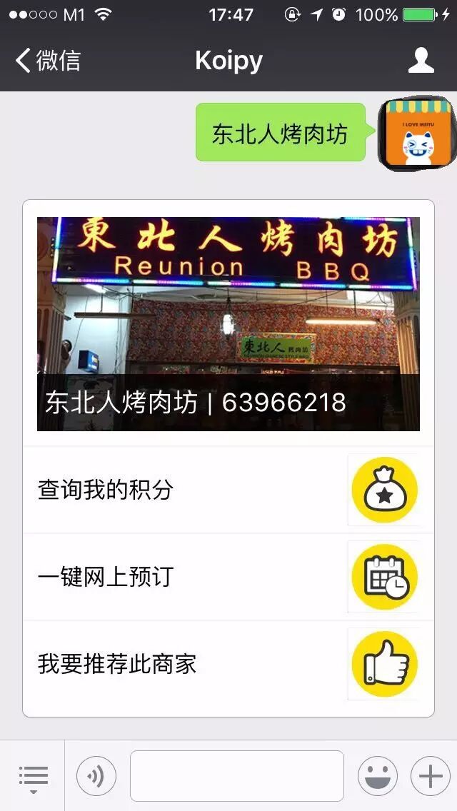 Step 2: 扫描进入之后回复“东北人烤肉坊”