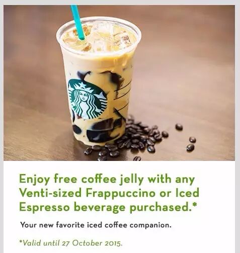 无论是咖啡控、还是星冰粉,对于咖啡果冻都没有抵抗力吧;配上冰咖啡,再完美不过。现在到星巴克点选5种饮品,就可以免费获得一勺咖啡果冻哦~为了大家点单方便,小K特地整理了出来,到时挑一个念就好了:Iced Caramel Macchiato with no vanilla syrup;Iced Low Fat Latte;Iced Irish Cream Latte;Iced Low Fat White Chocolate Mocha;Half white chocolate mocha, half mocha Frappuccino。