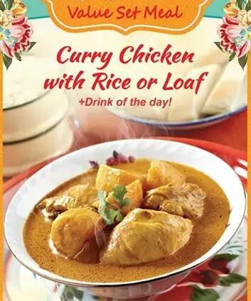 凭上图到店即可享用一份超值套餐,招牌咖喱鸡+当日特饮+饭、面包,只要10新币!堂食、打包都可以哦~